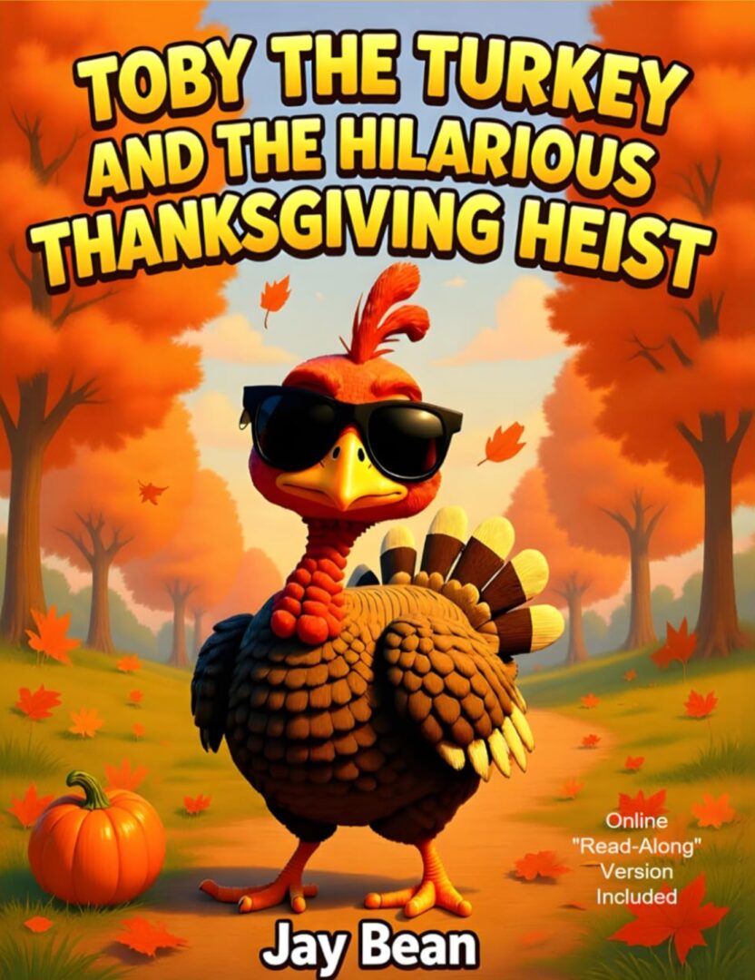 Now Available in Print! Beautiful Brilliant Colors in 3D! It's the laugh-out-loud adventure of Toby the Turkey who plans a creative escape from the table platter. The perfect gift for Children (and fun loving adults) this Thanksgiving Season. Get yours now!